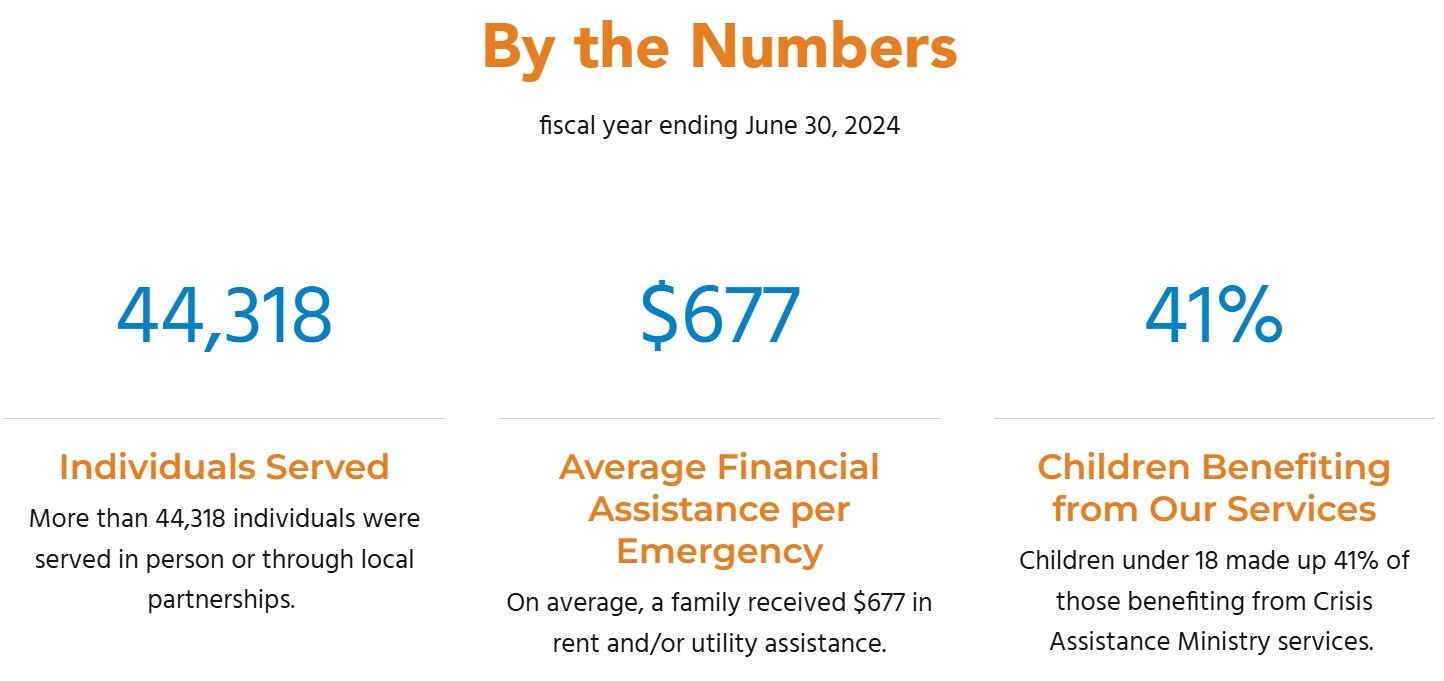 For 50 years, this community has come together here to offer hope, help, and understanding to people experiencing financial crisis in Mecklenburg County. In 2025, 125 families seek help here every single day. Crisis Assistance Ministry is their safety net—is Charlotte's safety net—amid the most uncertain of times. We can't do it without you. You offer hope when all seems lost. Needs: Rent, utilities, clothing, and household essentials to stabilize housing Provision: Help, hope, and understanding to create long term financial stability Our Mission: To  provide assistance and advocacy for people in financial crisis, helping them move toward self-sufficiency. Our Vision: To inspire our community to justice and generosity as we provide help, hope, and understanding to people struggling with limited financial resources.
